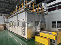 干燥機(jī)內(nèi)設(shè)置出不同溫度的單元區(qū)域,各單元設(shè)計(jì)有不同的風(fēng)向入口,采用獨(dú)立控溫和獨(dú)立熱風(fēng)循環(huán),通過(guò)調(diào)節(jié)各單元的排風(fēng)閥來(lái)控制各單元的排風(fēng)量,并在獨(dú)立的單元內(nèi)采用透過(guò)載體內(nèi)部結(jié)構(gòu)的穿流熱風(fēng)循環(huán)技術(shù)使物料快速干燥,克服了以往采用熱輻射方式造成的受熱不均而導(dǎo)致的開(kāi)裂、破損等問(wèn)題,實(shí)現(xiàn)催化器的烘干時(shí)間控制在10分鐘以內(nèi),含水率誤差土0.1%以內(nèi)。