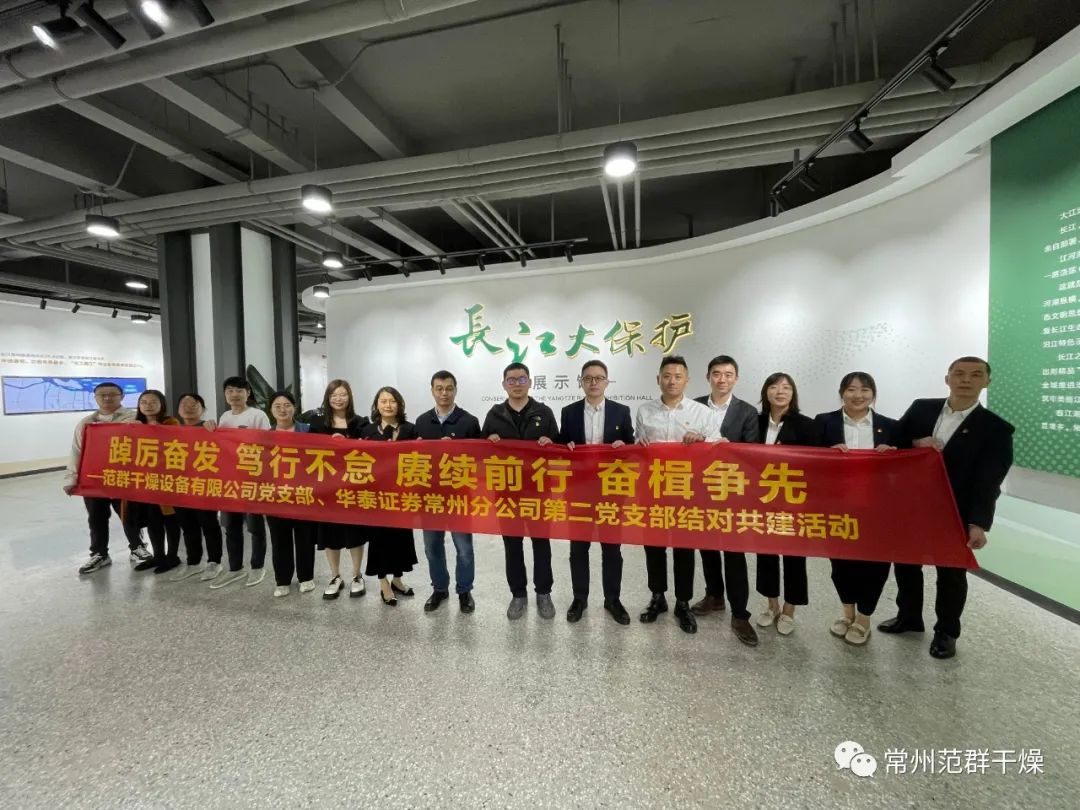 4月21日下午,常州市范群干燥設(shè)備有限公司黨支部、華泰證券常州分公司第二黨支部在長(zhǎng)江大保護(hù)常州展示館結(jié)對(duì)共建活動(dòng)。以“踔厲奮發(fā) 篤行不怠 賡續(xù)前行 奮楫爭(zhēng)先”為主題,探索新形勢(shì)下黨建工作合作的新思路、新模式、新做法,實(shí)現(xiàn)共建共享共贏。