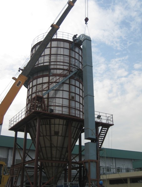 該套設(shè)備是專門為發(fā)酵液噴霧干燥而設(shè)計,要求產(chǎn)品具有生物活性。全套設(shè)備包括熱風系統(tǒng)、噴霧干燥塔、袋式除塵器等,是我司到目前為止在國外現(xiàn)場施工的最大噴霧干燥機。