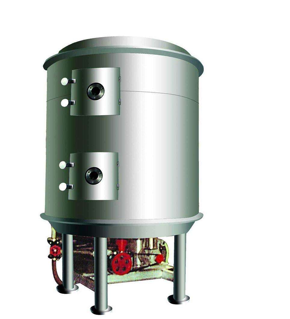 2.動力消耗低、噪音小。由于干燥過程中料層很薄,主軸轉(zhuǎn)速低,物料傳送系統(tǒng)所需的功率小,電耗量少,其全套干燥裝置動力消耗僅是對流方式傳熱裝置動力消耗的1/5~1/7,且噪音很小。